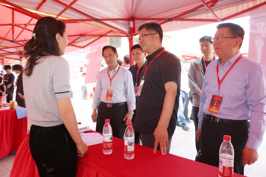 (图为总会社会组织助力教育强省工作指导小组组长王佩刚在招聘会现场了解招聘情况)