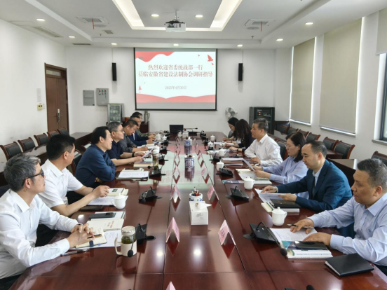 近日,由省委统战部一级巡视员、机关党委书记罗曙生带队,省委统战部港澳台统战工作处处长、安徽海外联谊会党支部书记罗敏,省委统战部非公有制经济工作处处长、安徽省光彩事业促进会党支部书记刘亮亮,省黄埔军校同学会秘书长、安徽中国和平统一促进会党支部书记陈从华,省委统战部新的社会阶层人士统战工作处副处长、安徽省新的社会阶层人士联谊会党支部书记刘婷,省委统战部机关党委副书记黄建国等领导一行6人,莅临省建设法制协会调研指导工作并开展座谈交流。