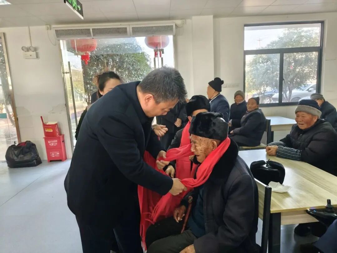 2026年2月11日上午,安徽省商务礼仪用品行业协会赴肥东县众兴乡敬老院开展“情暖夕阳·爱在众兴”新春慰问活动。会长何骥平,党支部书记杨颉,秘书长张国宪,常务副会长张友鹏、董书安,副会长马斌、张超、陆军,会员郭云龙等多家爱心会员企业代表共同参与,为老人们送去冬日的温暖与新年的问候。活动开始前,协会一行亲切走进老人中间,为他们一一戴上精心准备的保暖围巾和棉帽,并送上诚挚的新春祝福。捐赠现场,安徽礼协及佳诚尚品、味滋源、希么希、北京嘉铭桐辰、磐云文化等爱心企业向老人们捐赠了牛奶、坚果、面包、无糖糕点、蜂蜜、水果等生活必需品,每一份捐赠的礼物都承载着协会会员企业家们对老人们的深情厚意。捐赠仪式由协会常务副会长董书安主持。何骥平会长在致辞中表示,敬老爱老是中华民族的传统美德,协会自成立以来始终将履行社会责任作为重要使命。他希望通过此次慰问,能传递行业对老年群体的关爱,并呼吁更多企业加入公益行列。众兴乡敬老院张院长代表全院老人及工作人员,对协会及爱心企业的善举表示衷心感谢。他提到,安徽礼协已经连续第10次来到这里,捐赠的这批物资不仅温暖了老人们的身体,更温暖了他们的心,体现了社会各界对养老事业的支持。此次慰问活动不仅为老人们带去了实实在在的帮助,也展现了安徽省商务礼仪用品行业协会及会员单位服务社会、奉献爱心的责任担当。
