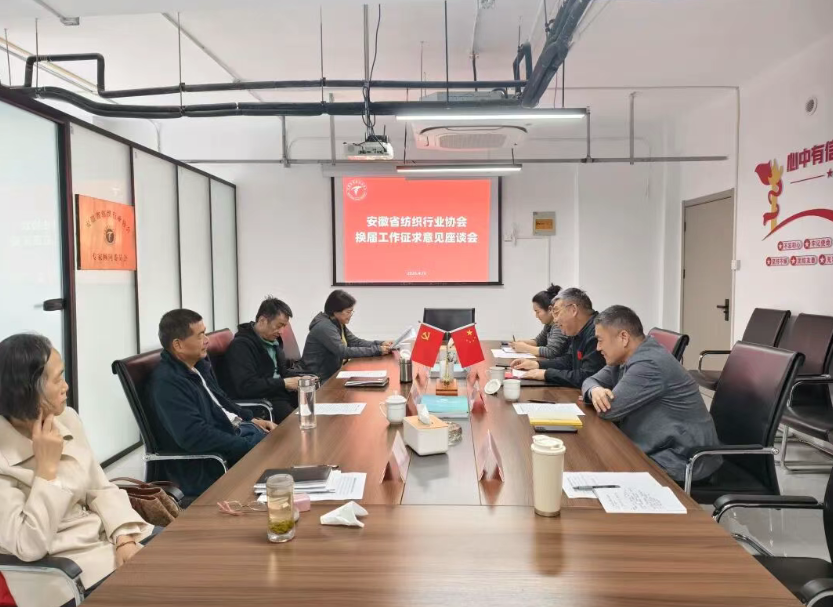 近日,安徽省纺织行业协会专家顾问委员会换届工作征求意见座谈会于协会会议室顺利召开。业内老领导、专家、企业代表、秘书处成员齐聚一堂,围绕协会换届工作、未来发展、行业服务等议题展开深入交流,为协会换届工作给予指导、共谋良策。