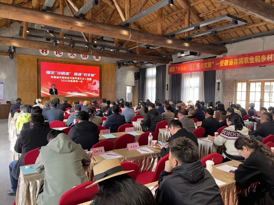 会上,省妇联董志慧副主席在致辞中强调,女性力量正在成为乡村产业振兴不可缺少的“柔引擎”,为我们“小而美”的发展注入了温情与活力,成为有情怀的逐梦人。沈欣在致辞中表示,新春第一会,旨在深入解读2026年中央一号文件和安徽省“稳经济30条”等重磅政策,凝聚行业共识,探讨如何在新的发展周期里,以“小而美”的匠心精神,为“农文旅”融合注入灵魂,推动农文旅业态提质、品牌升级。